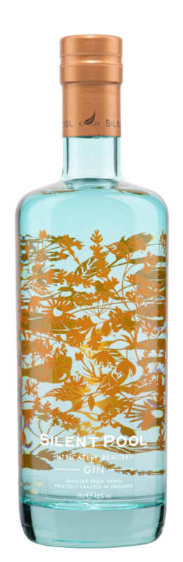 """Das Wasser welches zur Herstellung verwendet wird, wird direkt von einem kleinen See vor der Destillerie, dem ""Silent Pool"", gewonnen. Mit ho?chster Pra?zision und viel Liebe zum Detail wird der Gin vollsta?ndig in den vier Wa?nden der Brennerei hergestellt. Silent Pool ist ein frischer, klassischer Gin mit 24 Botanicals und viel Tiefe."""