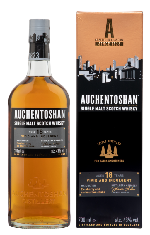 Der Auchentoshan 18 Jahre wurde dreifach destilliert und reifte in Amerikanischen Eichenfässern während 18 Jahren.